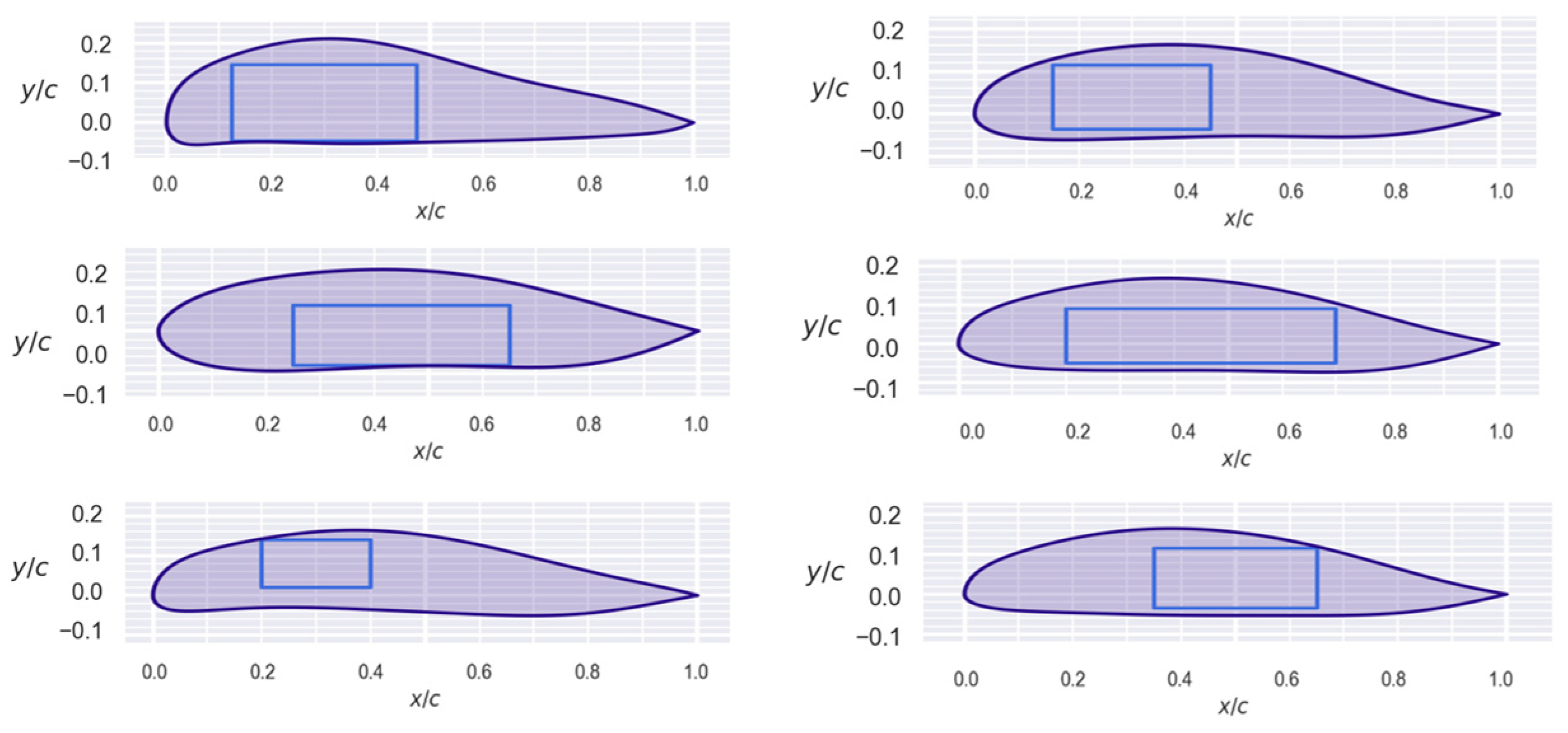 Examples of restriction boxes (blue and red rectangles). At the top are valid profiles, while at the bottom are invalid profiles.
