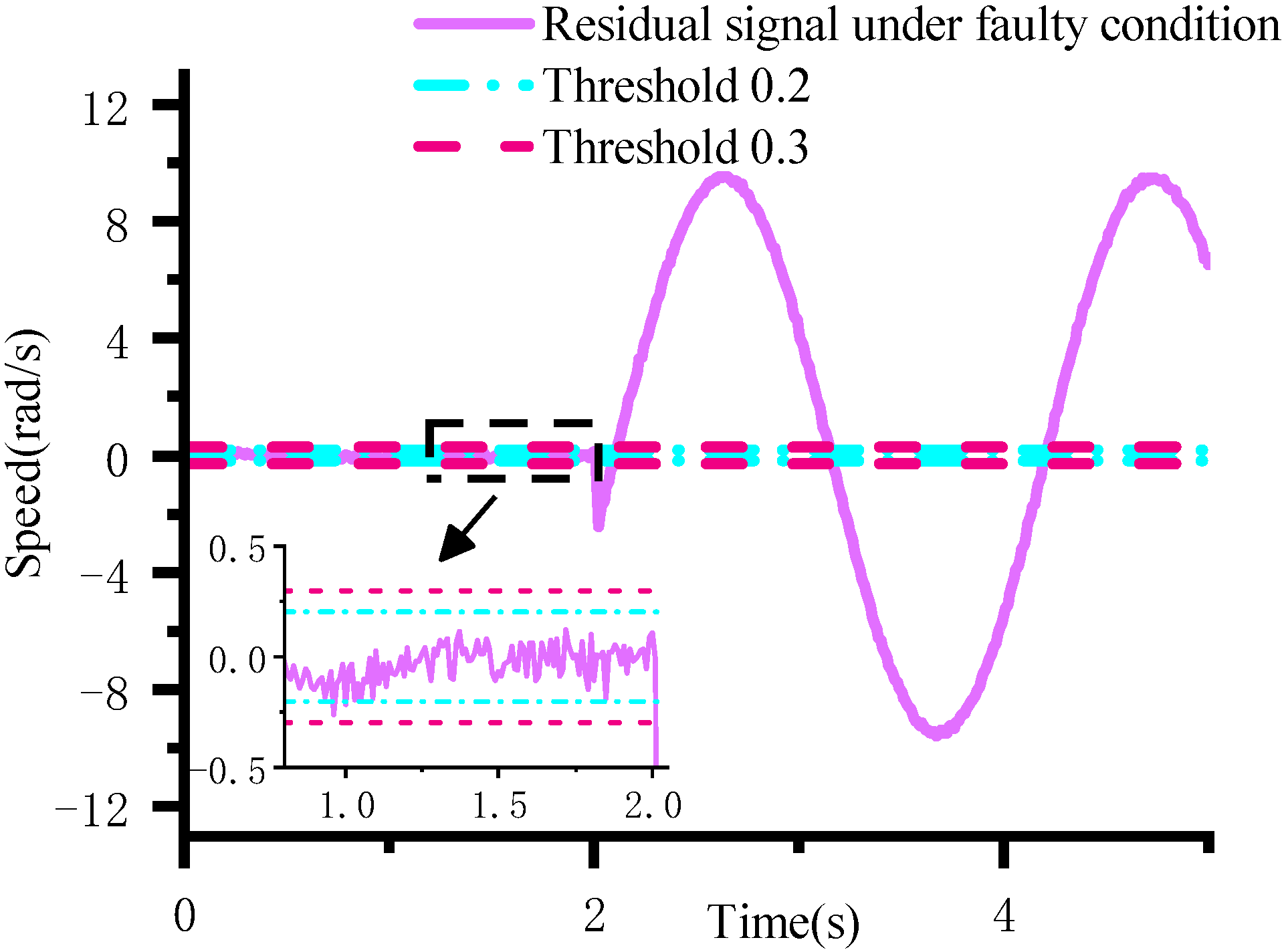 - Rapidity: This refers to the ability of the system to quickly and accurately identify faults under ideal dynamic conditions during the switching process between the primary and standby systems. In simulation, the rapidity of fault detection results can be evaluated by monitoring the changes in parameters such as the actual speed, estimated speed, and residual of the motor system.