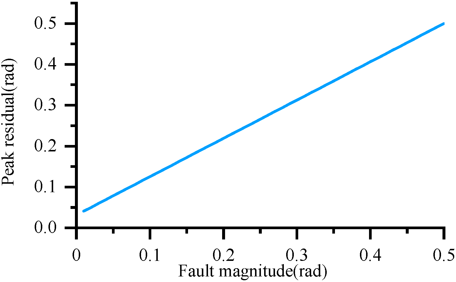 - The reliability calculation for fault detection based on a single robust observer is as follows, and the corresponding reliability diagram of false positives and false negatives is shown in Figure 10.