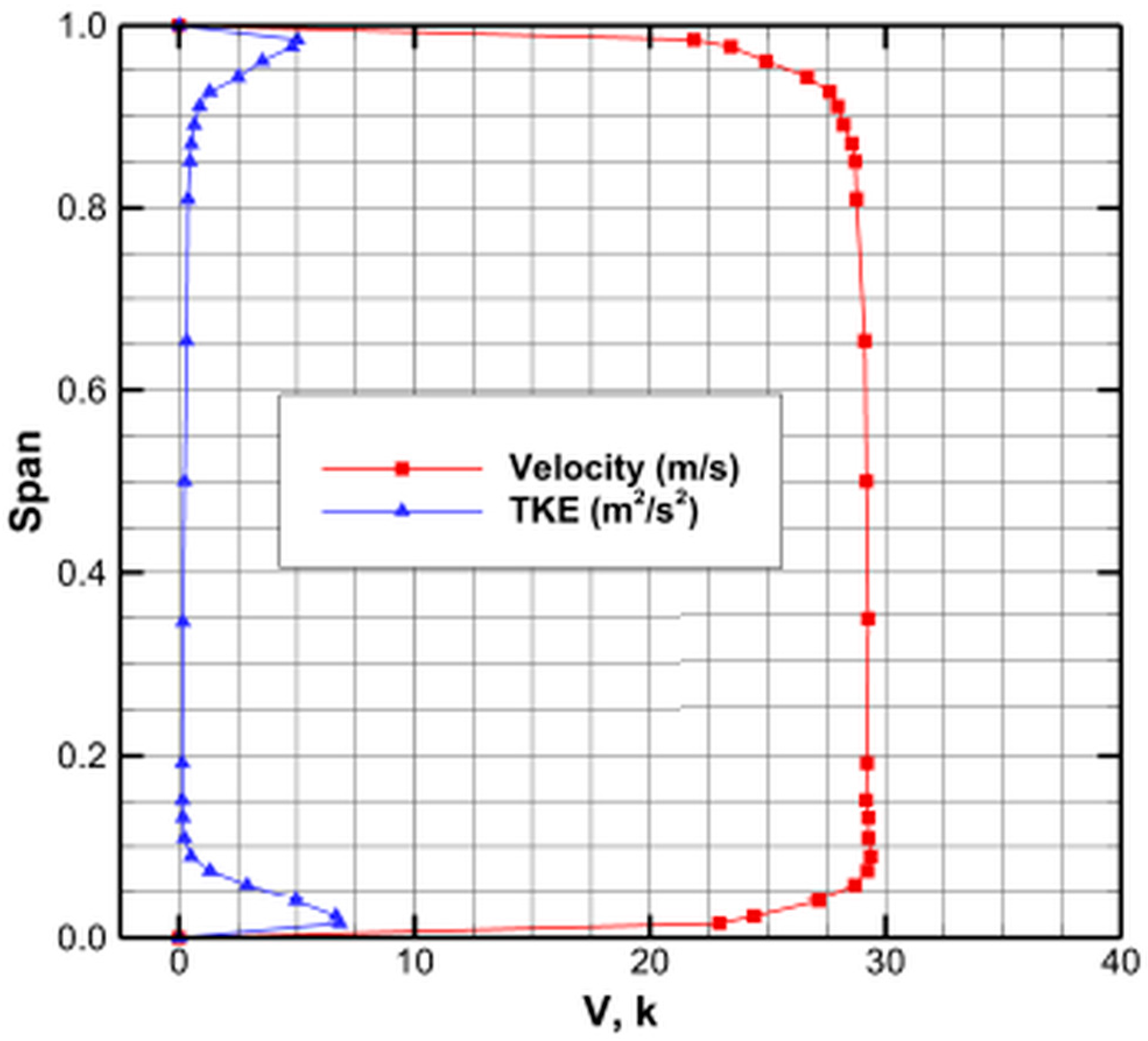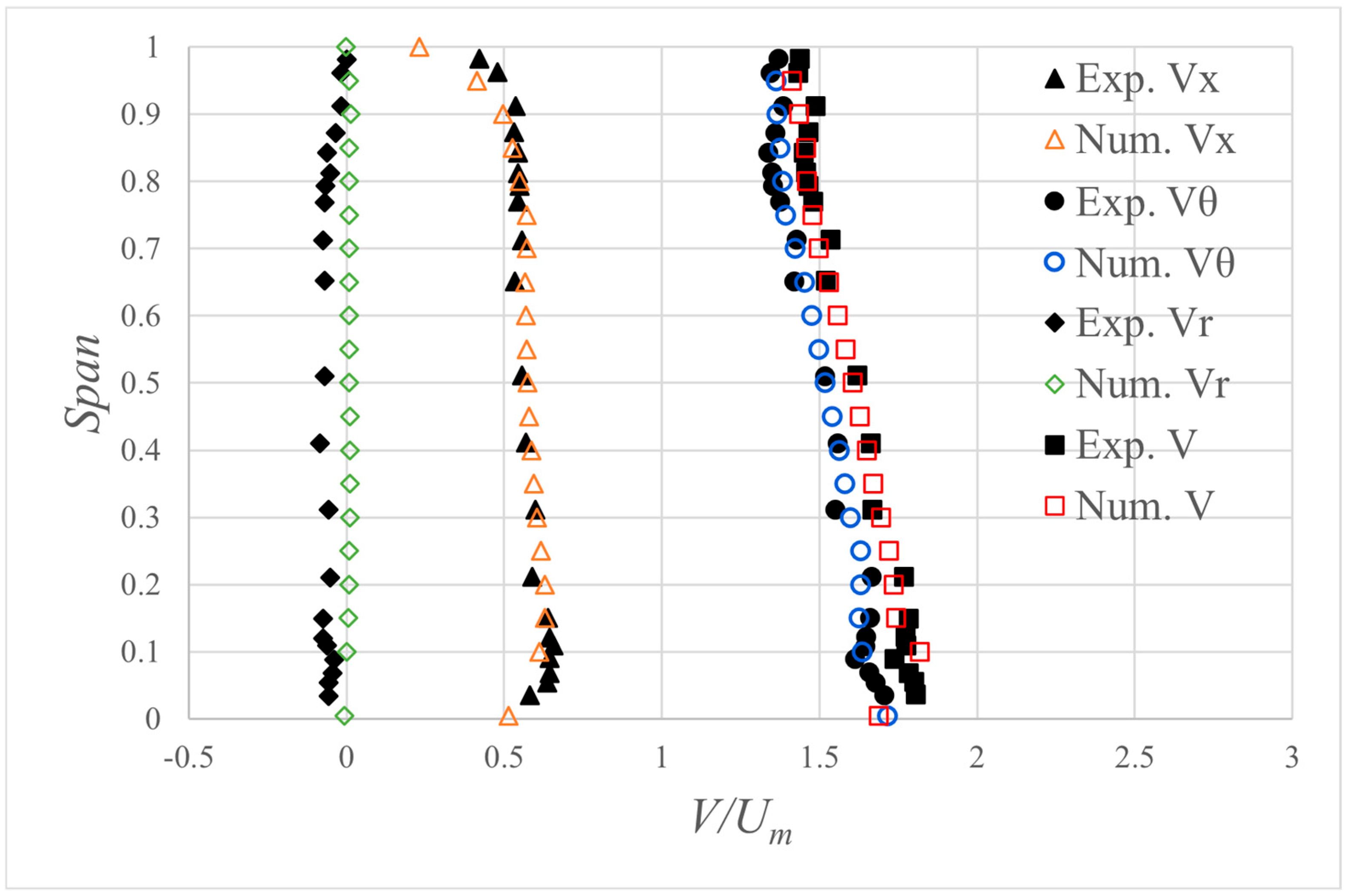 Combining a full channel squealer with injection (ISQ) yields the best TLV suppression and flow uniformity. The mid-gap plot for this design shows almost no coherent TLV core. The TLV is essentially broken up by the dual cavities and injections. The velocity field is highly even, with very little low-energy recirculation. This design produces the lowest aerodynamic losses; the leakage flow is minimized, and the passage flow is smooth. In short, this configuration shows the weakest TLV and most uniform outlet flow of all cases, indicating the best overall aerodynamic performance and TLV control.