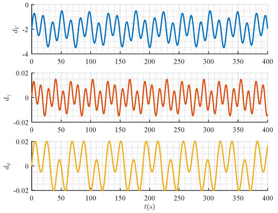 where is the angle of attack (AOA), m is the mass, g is the acceleration due to gravity, T is the thrust, L is the lift, D is the drag, is the bank angle, denotes the position vector in the inertial frame, and represents the external disturbance. For notational convenience, define .