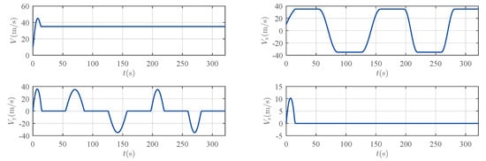 - A kinematic loop: This part computes a desired velocity vector (i.e., virtual control law , which is essentially defined by the velocity magnitude , the velocity elevation angle , and the velocity heading angle ) based on the position tracking error.