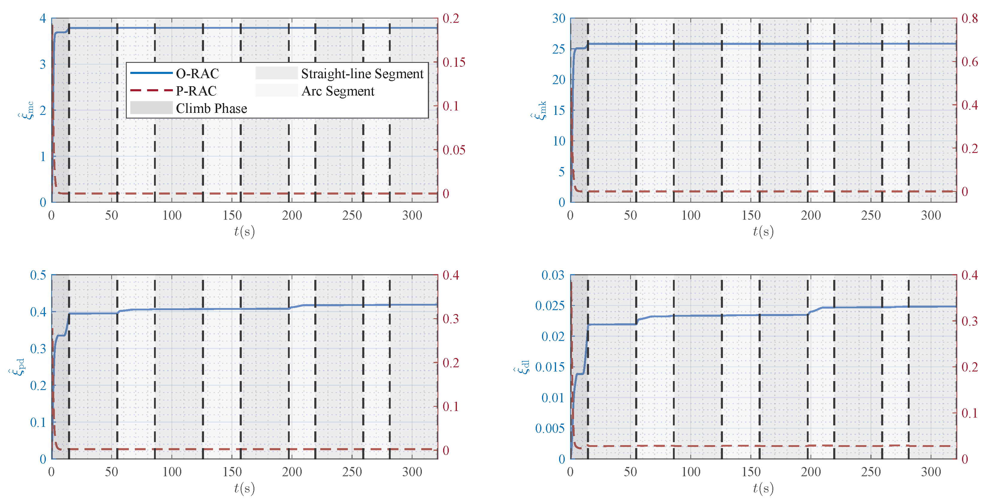 of those under the O-RAC, respectively. These quantitative results further confirm the superiority of the proposed RAC, especially P-RAC, in ensuring accurate trajectory tracking.