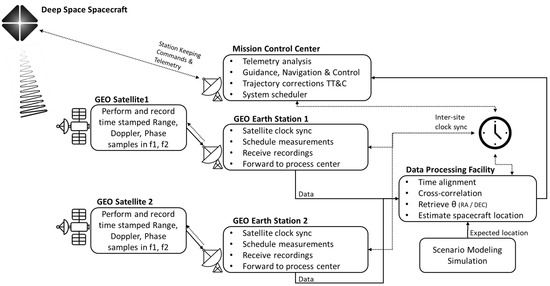 14]. In all these cases, the primary objective is radio astronomy rather than navigation; at least one element of the baseline is ground-based (SunRISE is an exception, but operates at very low frequencies), and the operating frequencies and signal structures differ substantially from the narrowband spacecraft downlinks considered here. To the best of the authors’ knowledge, a fully space-based, dual GEO VLBI configuration that cross-correlates spacecraft signals specifically for deep space navigation has not been implemented or reported.