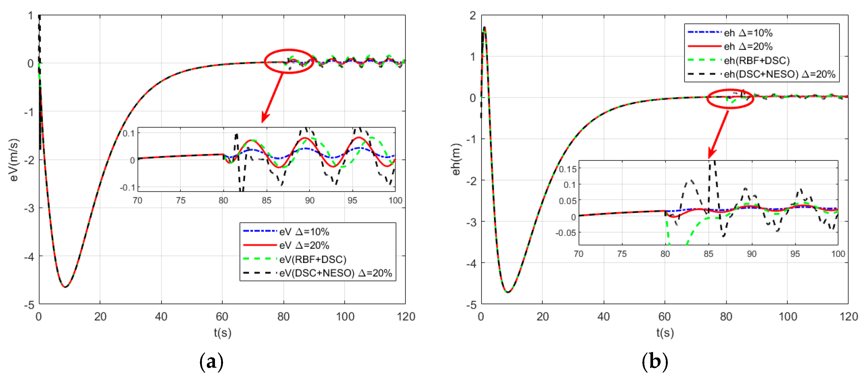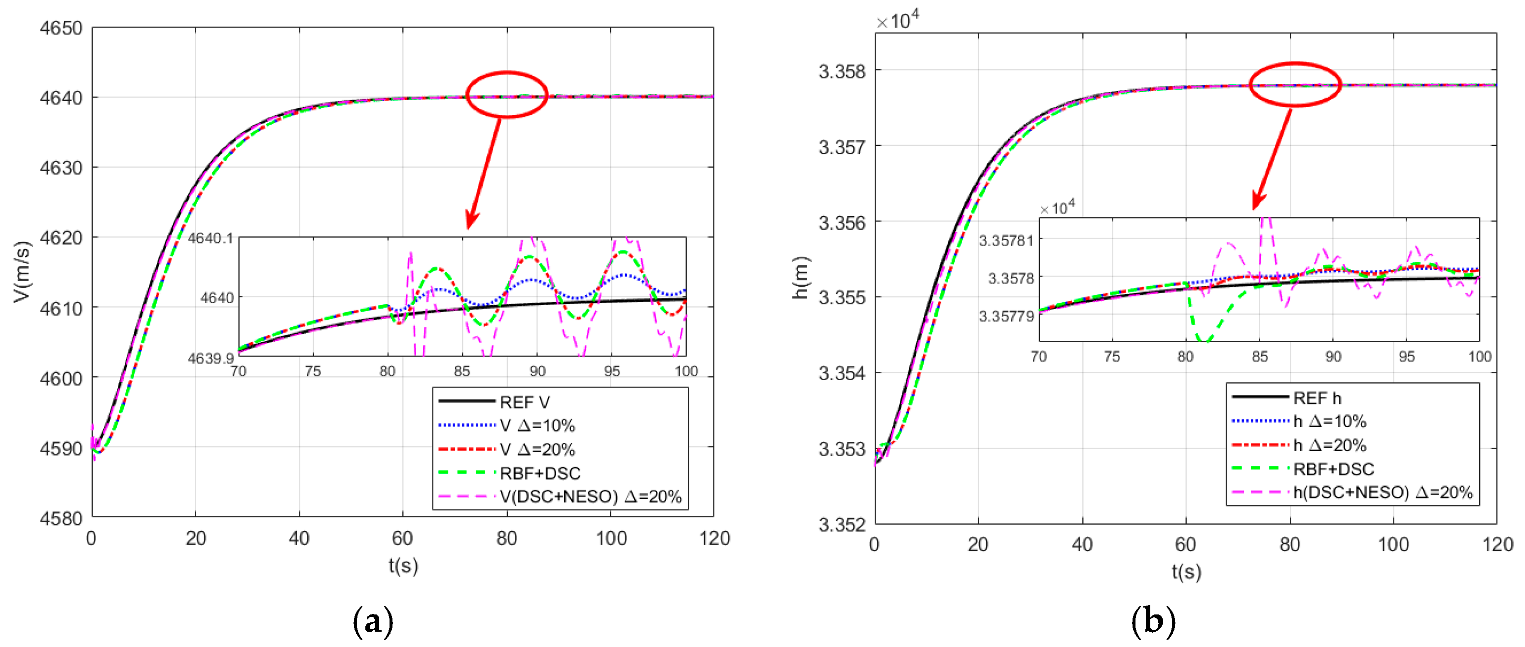 22], the control scheme proposed in this paper still achieves a slight improvement, with root mean square errors for velocity and altitude of 0.074 and 0.038, respectively. Experimental results demonstrate that, compared to traditional control methods, the proposed method significantly enhances the tracking accuracy of the system under parameter perturbations, with a steady-state accuracy improvement of approximately 20%. When compared to Reference [