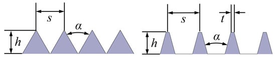 5]. Chan explored the influence of the riblet height-to-spacing ratio and found that the trend of the “k”-type behavior is associated with the destruction of near-wall cycle structures, which is indicated by the shortening of Reynolds stress structures [