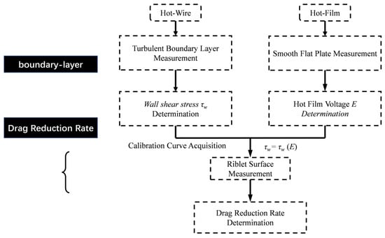 Figure 11. The corresponding fitting functions are given by Equation (2) and Equation (3), respectively. It should be noted that prior to each measurement of the drag reduction rate on the riblet surface, in situ calibration of the hot-film probes must be performed under smooth-wall conditions to obtain updated calibration curves.