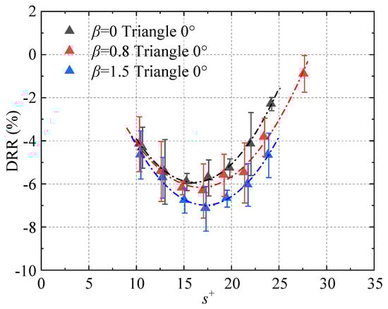 Figure 14, respectively. It is evident that the adverse pressure gradient exerts a positive effect on the drag reduction performance of riblets. The drag reduction rate increases with the intensity of the adverse pressure gradient, which is consistent with the findings reported by Debisschop and Nieuwstadt [