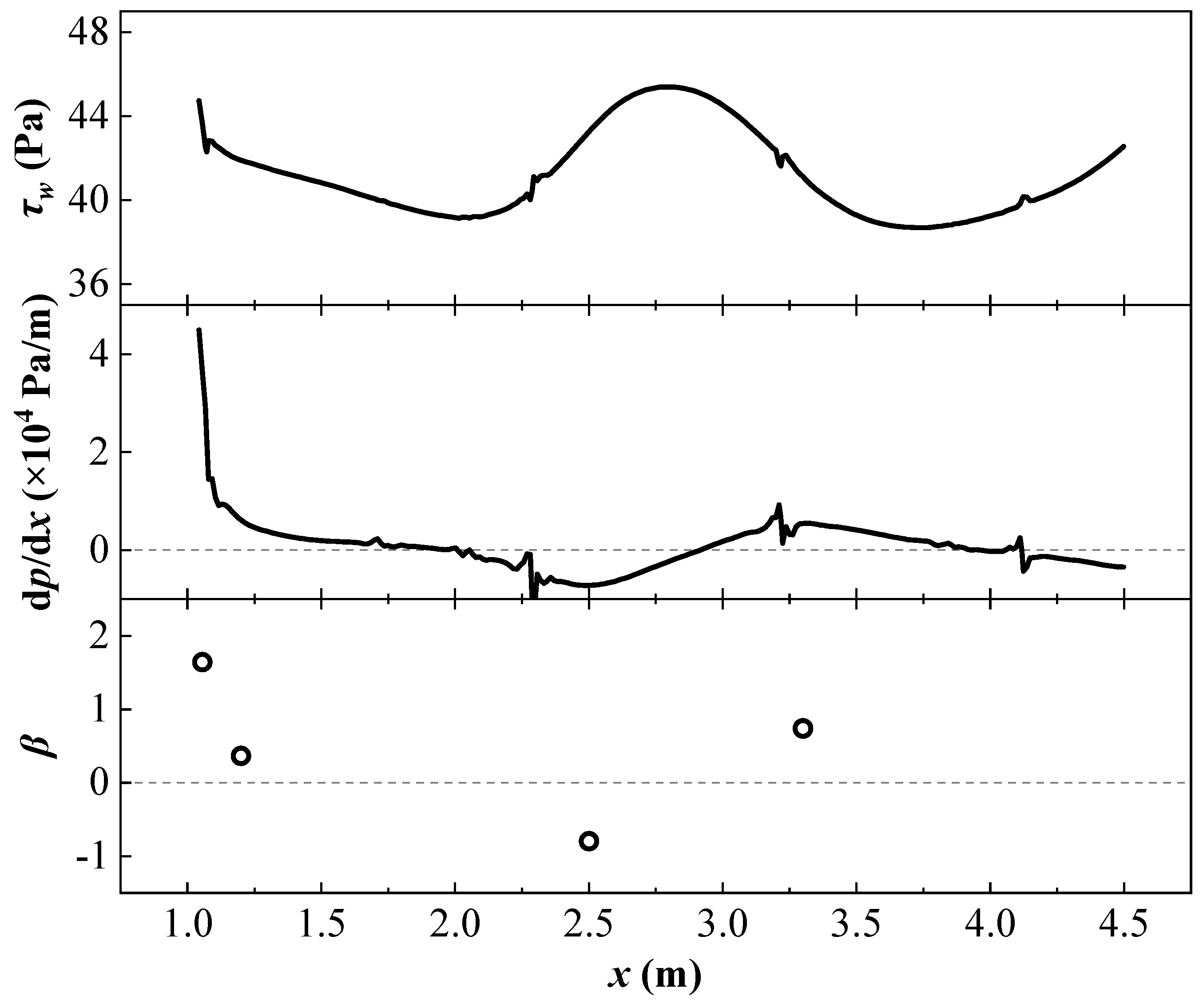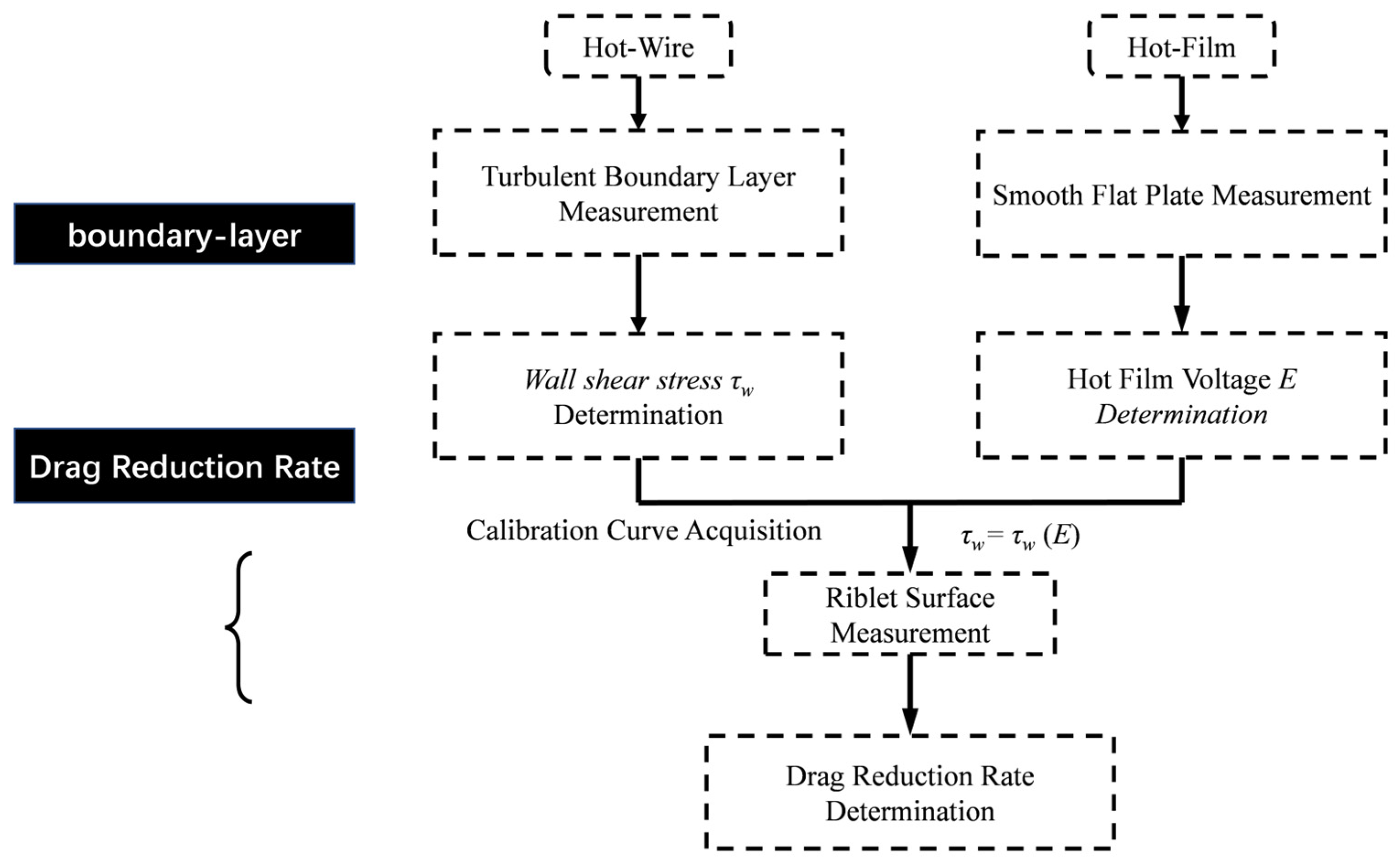 Under both zero pressure gradient and the aforementioned adverse pressure gradient conditions, drag reduction rates of riblet surfaces relative to smooth walls were measured using hot-film probes (also referred to as wall shear stress sensors). Conventional practice employs in situ calibration for this type of wall shear stress probe. Therefore, under smooth-wall conditions, the local wall shear stress