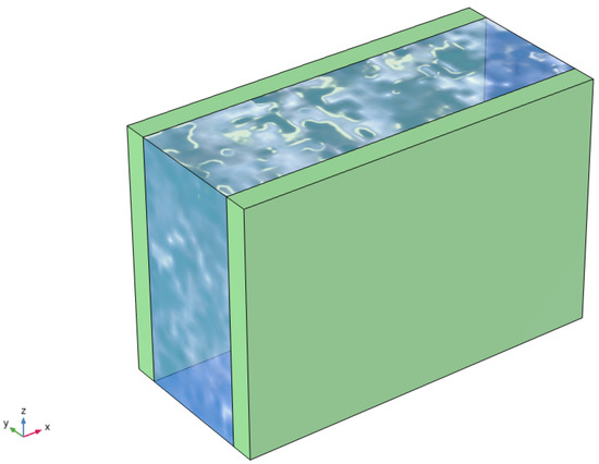 Schematic of the sandwich-like model domains; the aluminum plates are green, while the water volume is represented with a realistic texture.