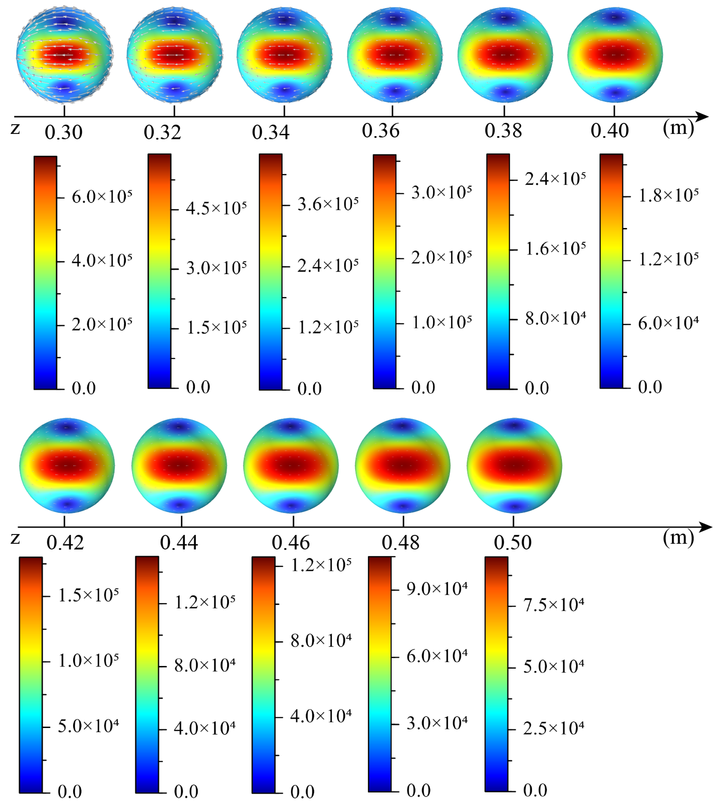 - Yu, Y.; Yue, H.; Yang, F.; Zhao, H.; Lu, Y. Electromagnetic Interaction Between a Slowly Rotating Conducting Shell and Magnetic Dipoles: A Theoretical and Numerical Study. IEEE Trans. Magn. 2021, 57, 6302311. [Google Scholar] [CrossRef]