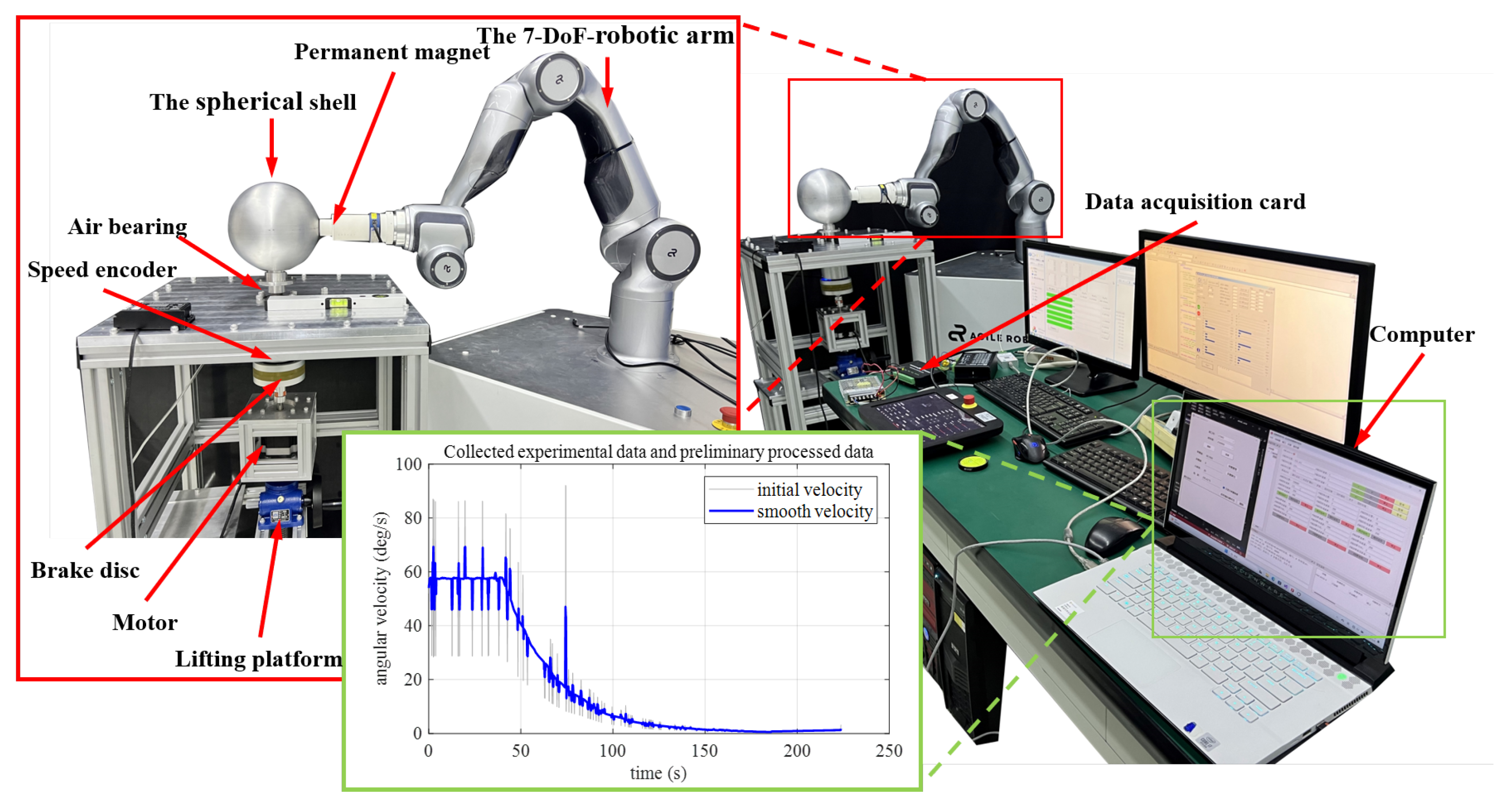 - Meng, Q.; Zhao, C.; Ji, H.; Liang, J. Identify the Full Inertial Parameters of a Non-cooperative Target with Eddy Current Detumbling. Adv. Space Res. 2020, 66, 7. [Google Scholar] [CrossRef]