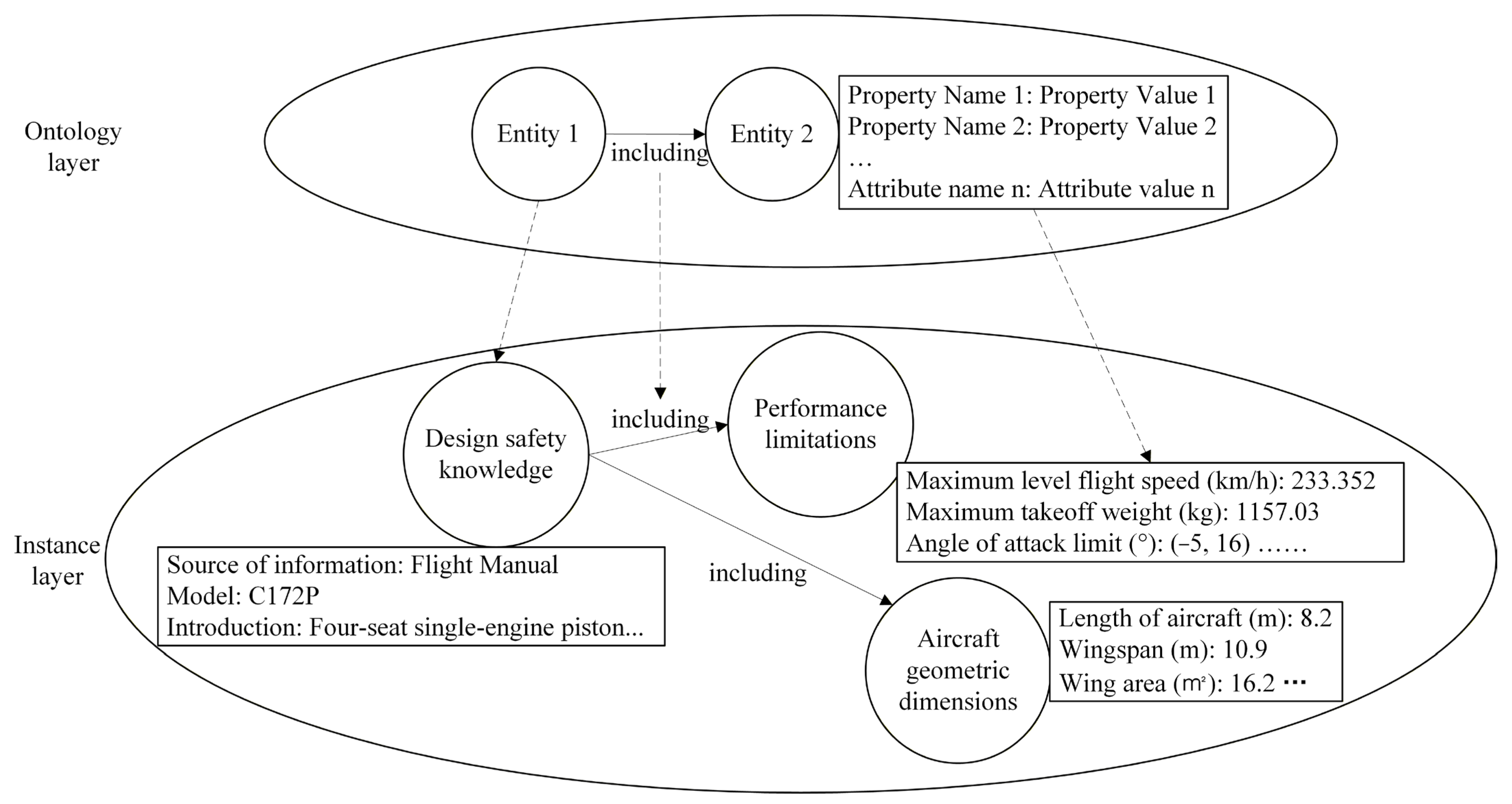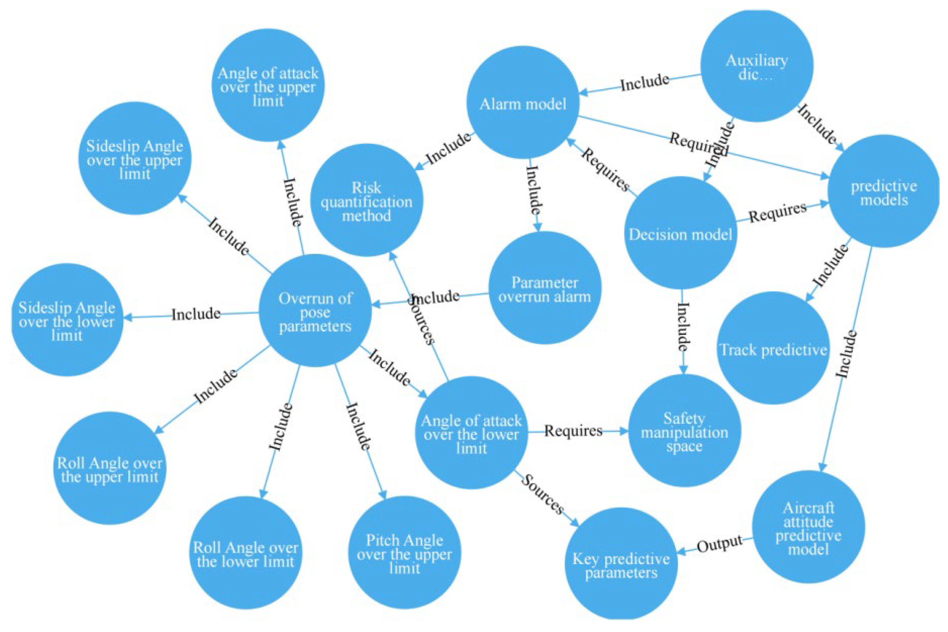 (1) A knowledge graph for flight test safety is constructed, expanding its application scope. By leveraging the depth of knowledge in the flight test safety knowledge graph, the graph not only provides rich background knowledge and parameter support for the aircraft attitude predictive model but also offers scientific manipulation suggestions for flight safety monitoring and decision-making.