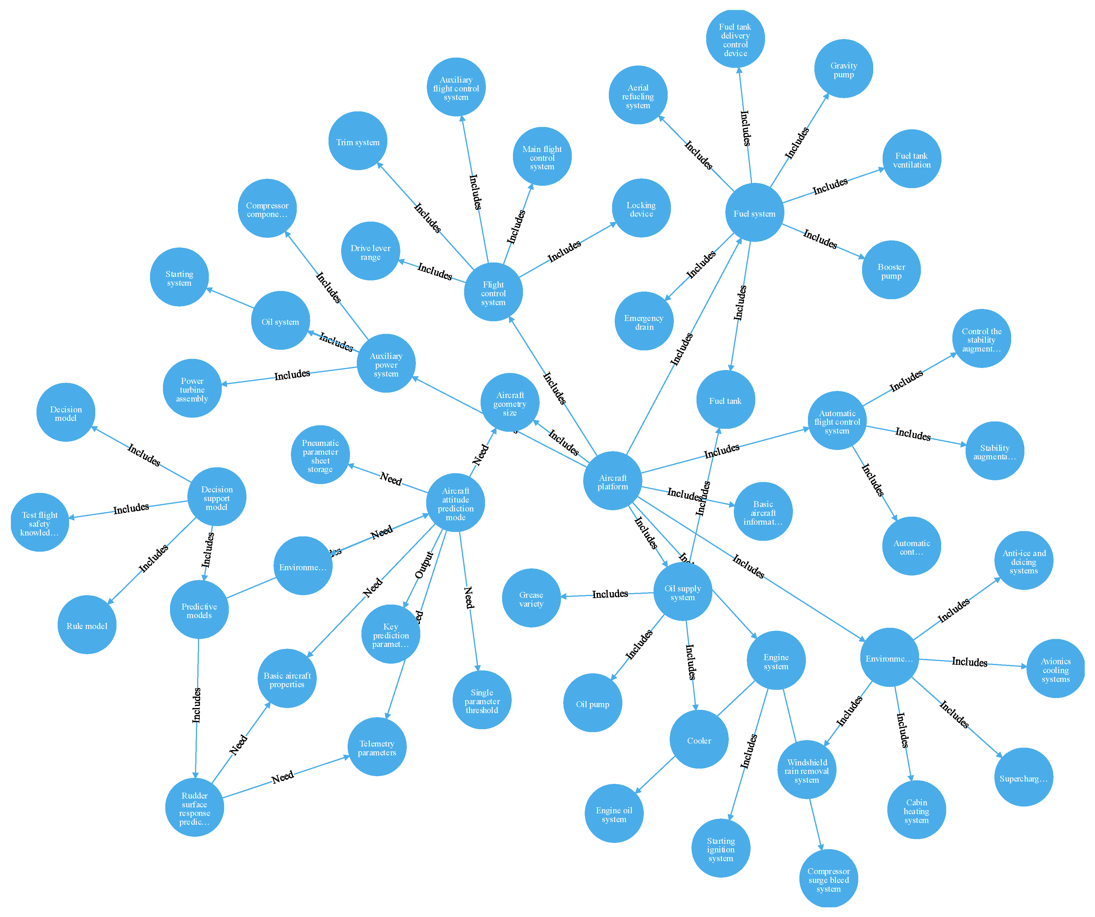 To provide support for unexpected situations during flight, the auxiliary decision-making should be clear about two goals: one is to improve the decision-making efficiency, that is, to push the most accurate decision-making information at the fastest speed when unexpected situations occur. With the knowledge graph as the basic tool, telemetry data are combined with flight safety knowledge, enabling alarm information and disposal measures to be quickly pushed when relevant parameters meet the alarm discrimination requirements. The other goal is to enhance the analysis ability of complex faults. For complex faults encountered during flight tests, it is necessary to be able to identify the essence, analyze the key alarm causes and solutions from a large amount of data, and provide a strong theoretical support for auxiliary decision-making.