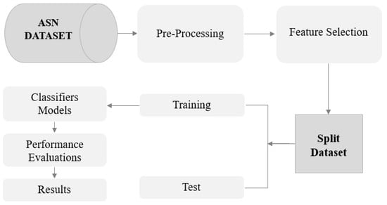KNN is a supervised machine learning algorithm, commonly applied to classification and regression problems []. Their approach consists of identifying the k-data points closest to a specific point of interest, based on a relevant distance measure. In our study, it seeks to predict the correct class of test data by calculating the distance between the test and all training points.