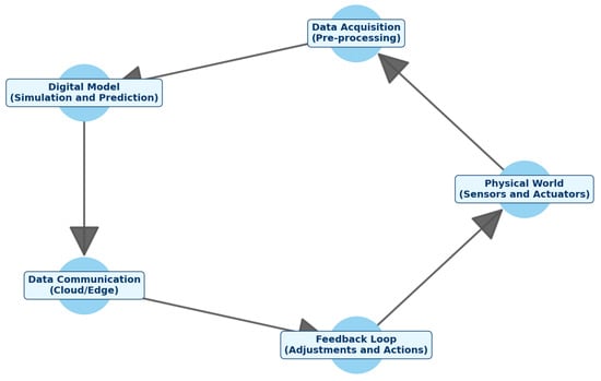 The framework developed in this work aims to support future extensions, specifically the integration of real-time data from sensors such as ice detection sensors (e.g., vibrating probes, optical or ultrasonic ice detectors), total air temperature (TAT) sensors, humidity sensors, angle of attack (AoA) sensors, Pitot-static sensors, infrared sensors, and others—aspects not addressed in this study due to its focus on digital models. The title refers to the digital twin-driven approach to the design of an ice prediction model, focusing on the development of a model that, through progressive iterations, aims to increasingly replicate the true physical behavior of the ice accretion phenomenon. The current model is merely a starting point. This predictive block represents a crucial initial step toward the development of a fully integrated digital twin, which will ultimately incorporate real-time sensor data to enhance the system’s predictive and diagnostic capabilities. Figure 1 below provides a block diagram to explain the logical functioning of the digital twin model.