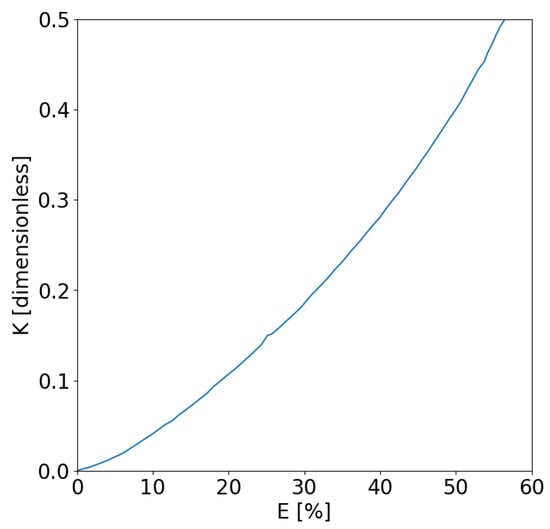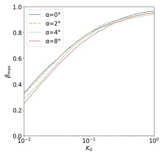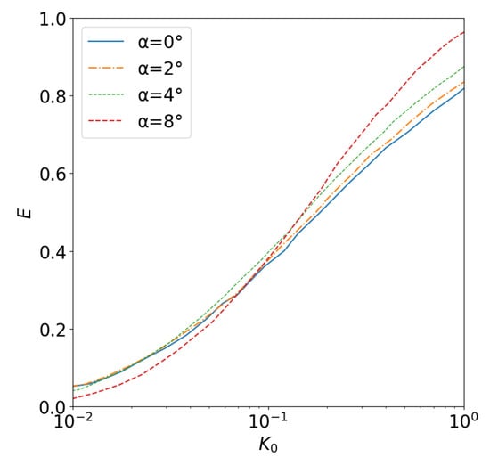 Applying the Langmuir and Blodgett theory [], the variables and K can be combined into a single parameter , known as the modified inertia, which accounts for the influence of droplet size and, from a mathematical perspective, representing the Stokes number.