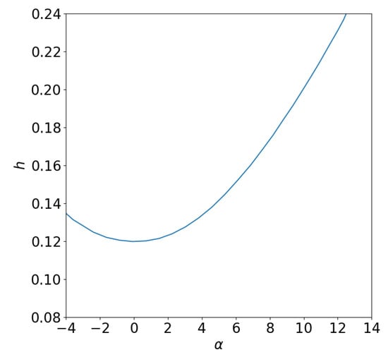 NACA has drawn several charts that allow for a highly accurate estimation of the E, , and h values for different angles of attack and the modified inertia parameter . These values can be obtained through the use of Figure 8, Figure 9 and Figure 10, which have been digitized and subsequently interpolated to generate numerical maps, as was done with LWC in Section 3.1 [,,,,,,].
