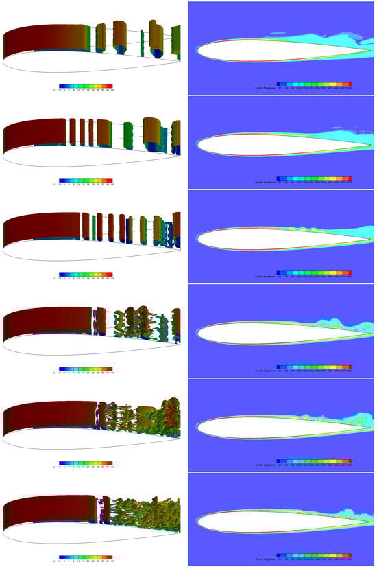 - Shan, H.; Jiang, L.; Liu, C. Direct numerical simulation of flow separation around a NACA0012 airfoil. Comput. Fluids 2005, 34, 1096–1114. [Google Scholar] [CrossRef]