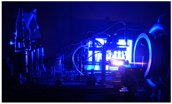 Propellant feeding system and thruster experimental setup (left) and combustion chamber visualization setup (right) with chemiluminescence suppression.