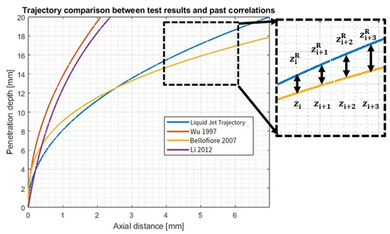 Liquid jet in crossflow trajectory correlations of previous studies.