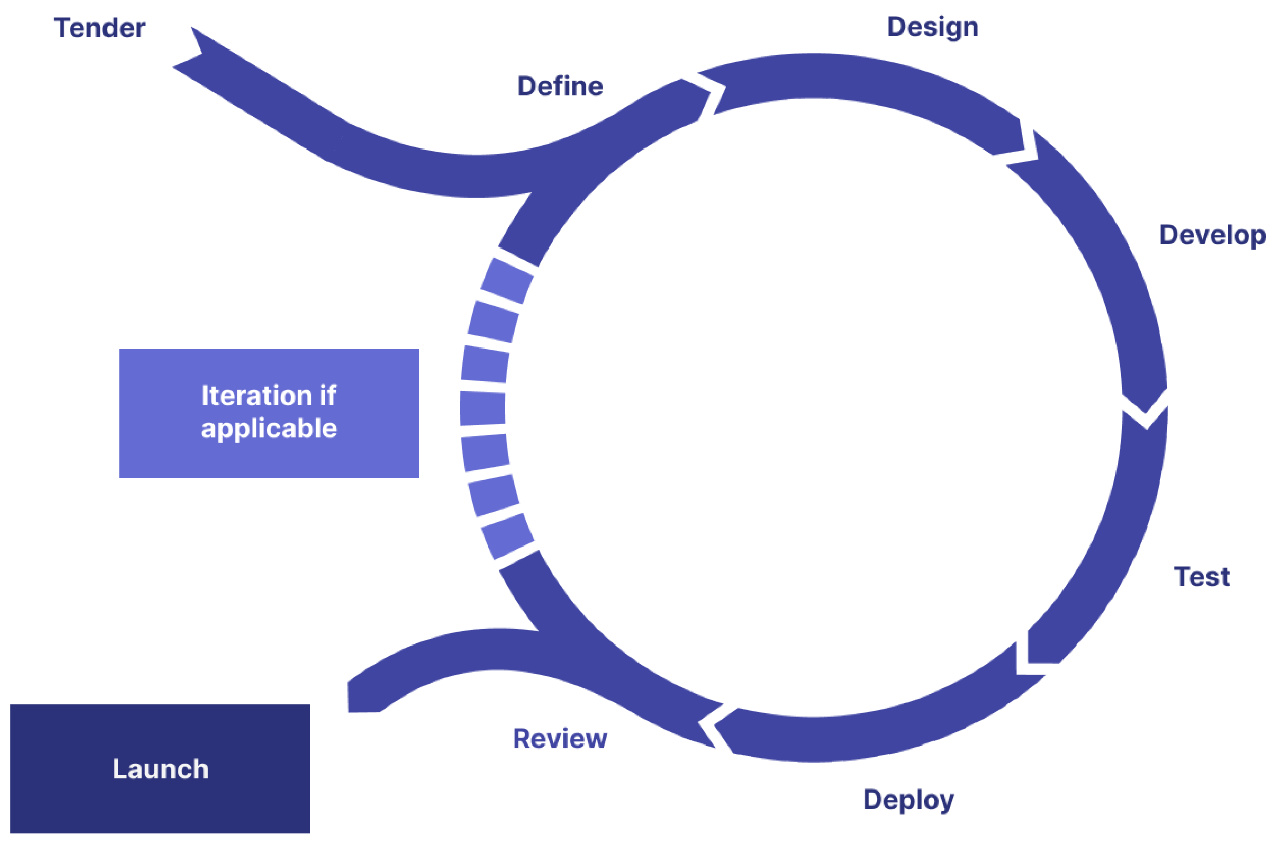 The deficits described in the previous section are typical for a waterfall model. The workflow could be improved by using an agile project approach, which is common in other sectors [19]. An agile project focuses on iterative development, customer collaboration, cross-functional teams, adaptability, and continuous improvement. Projects are divided into small iterations, each resulting in a working product increment (Figure 2). Continuous feedback from customers ensures the product meets their needs [20].