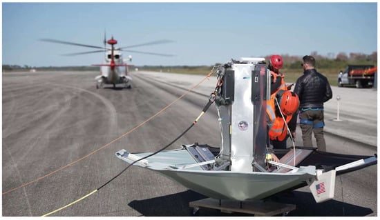 - Daum, J. Orion Capsule Parachute Assembly System (CPAS) Main and Drogue Canopy Instrumentation. In Proceedings of the AIAA Aviation 2019 Forum, Dallas, TX, USA, 17–21 June 2019. AIAA 2019-3280. [Google Scholar]