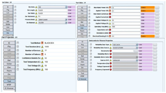 To address the absence of these proprietary parameters, this study utilizes Sherlock software, as illustrated in Figure 4. Sherlock software generates proprietary data based on external input conditions (e.g., Package, Die, Electronic, Test, and IC wearout) to perform PoF analysis. Specifically, scaling factors are automatically generated within Sherlock software, enabling reliable PoF analysis through the integration of extensive experimental data and validated models.