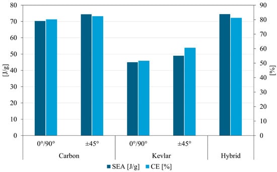 Crashworthiness properties comparison among carbon, aramid, and hybrid laminate.