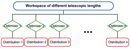 The Weighted Ensemble Learning algorithm consists of three parts: dataset obtainment, model selection, and data prediction. First of all, the dataset is obtained by the flowchart, as shown in Figure 6. The input is the reachable workspace under different telescopic lengths. The improved Monte Carlo algorithm with different parameters corresponds to various optimizers, and each optimizer generates a specific data distribution, which reflects its optimization capability. Greater optimization capability indicates higher quality of the workspace generated under the current parameters.