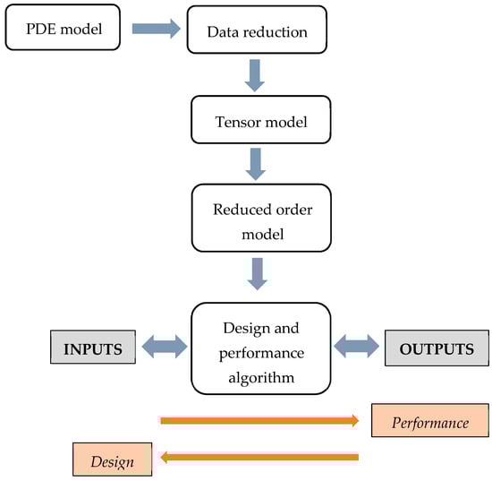 - Step (3) Database generation: The closed-form data reduction relations were used to generate the PDE database (if these were not available, simulation results from Step 1 would be used instead, albeit at the cost of a much less populated database). The database form was that of seven 6D tensors. The dimensions of each tensor corresponded to the six input parameters P1–P6. Each tensor contained, stored as data, one of the seven output parameters Q1–Q7;