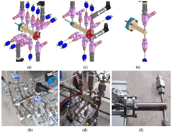 National Instruments (NI) (Austin, TX, USA) data acquisition with a sampling frequency of 1 kHz and a LabVIEW interface were utilized for data acquisition. The sensors used in the test bench are listed in Table 1. Pressure measurements were conducted using ATEK BCT22 (Kocaeli, Türkiye) pressure transducers with a measurement range of 0–70 bar and an accuracy of ±0.35 bar, operating at a sampling rate of 1 kHz. Differential pressure was measured with an Aplisens Pre-28 (Warsaw, Poland) differential pressure transducer with a 0–16 bar measurement range and ±0.1% full scale accuracy. Thrust measurements were conducted with a KD40s load cell from ME-Systeme (Hennigsdorf, Germany), with a load range of 5 N and an accuracy of 0.1% of full scale. Natural frequency of the load cell is 600 Hz, significantly higher than the natural frequency of the thrust stand, thus ensuring it does not interfere with the thrust measurements. Temperature measurements were conducted using Omega K-type thermocouples (Manchester, UK), chosen for high-temperature durability. A 10 Hz low pass filter was applied [41].