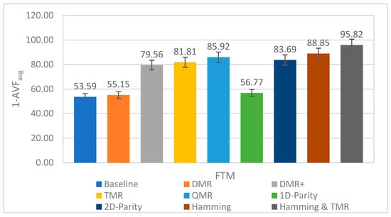 The reliability of an FTM refers to its ability to prevent system failure even when exposed to faults such as radiation-induced errors. In this study, we use the Architectural Vulnerability Factor (AVF) to compare the reliability of different FTMs. AVF indicates the probability that faults occurring in hardware components will affect the system output and is commonly used to measure susceptibility to soft errors like Single Event Upsets (SEUs) [29]. AVF values range from 0 to 1, with lower values indicating better fault tolerance.