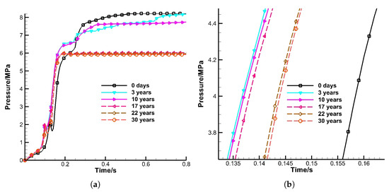 The change curve of pressure vs. time. (a) The global pressure change line. (b) The details of pressure variation.