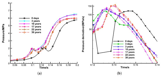 The pressure growth comparison curve. (a) The detailed changes in pressure after the cover is opened. (b) The pressure rise rate over time.