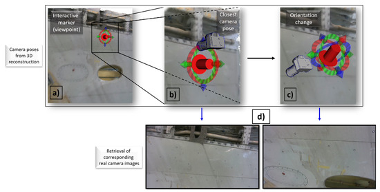 - For visualizing the system state, ROS Visualization 2 (RViz 2) [57] is used as the Graphical User Interface (GUI) due to its seamless integration and clear 3D scene display. Additional plugins, as depicted in Figure 5a, are integrated to improve the visualization of inspection data.