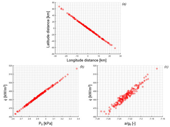 Compared to the purely aerodynamic reentry data in Table 6, the maximum pressure and acceleration in this case are lower due to the smaller mass at reentry, resulting in a smaller ballistic parameter. The speed of the body and the atmospheric density during descent plays a key role in heat flux and wall temperature, and since the velocity is greater in the propulsive re-entry, the peak heat flux and wall temperature will also be greater for this case. In conclusion, it is important to notice the difference in the time of descending in the two possible scenarios considered, which affect the landing dispersion as reported in following sections.