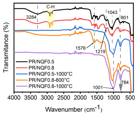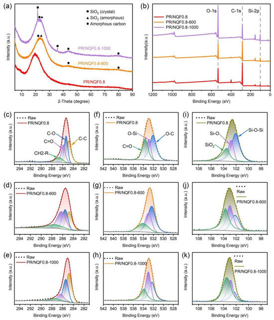 2− in PR, along with the thermal decomposition of the end groups on benzene rings; (3) the presence of highly reactive hydroxyl groups, which provided an oxidizing atmosphere for the cleavage of methylene groups; (4) polyaromatic structures, which formed by dehydrogenation and cyclization reactions. Above 850 °C, the thermal decomposition of organic was essentially completed, and the TGA curve tended to gentle. The residual resin further decomposed and carbonized, resulting in a slight weight loss [