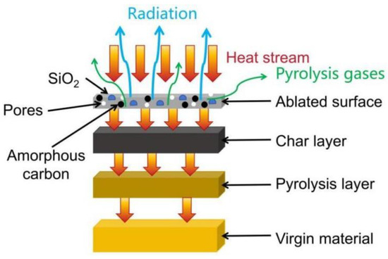 3]. Currently, widely studied low-density ablation composites primarily consist of carbon fiber/phenolic resin, such as PICA used by NASA, which has been applied as a thermal protection material in the “Orion” spacecraft and the Mars Science Laboratory (MSL) “Curiosity” rover. Subsequently, the Ames Research Center developed materials like C-PICA and PICA-X [