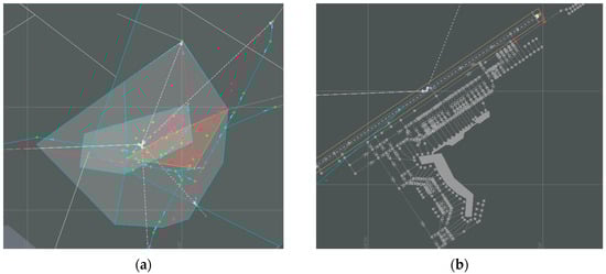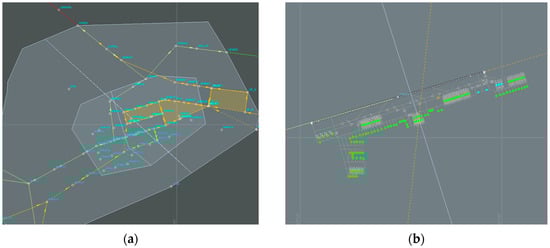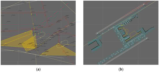Simulation diagram of Shanghai Hongqiao Airport: (a) terminal airspace; (b) airside.