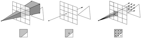 - Mammen, A. Transparency and antialiasing algorithms implemented with the virtual pixel maps technique. IEEE Comput. Graph. Appl. 1989, 9, 43–55. [Google Scholar] [CrossRef]