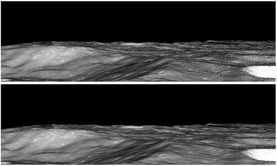 - Wagner, R.; Speyerer, E.; Robinson, M.; LROC Team. New mosaicked data products from the LROC team. In Proceedings of the 46th Annual Lunar and Planetary Science Conference, Houston, TX, USA, 16–20 March 2015; number 1832. p. 1473. [Google Scholar]