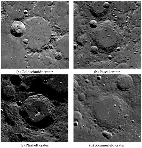 - Robbins, S.J. A new global database of lunar impact craters >1–2 km: 1. Crater locations and sizes, comparisons with published databases, and global analysis. J. Geophys. Res. Planets 2019, 124, 871–892. [Google Scholar] [CrossRef]