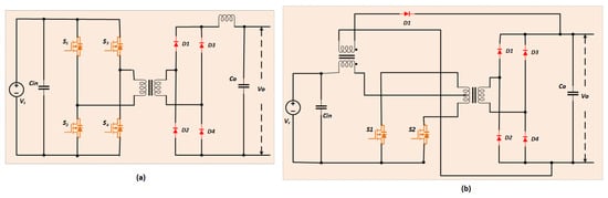 (a) Full-bridge converter. (b) Current-fed Weinberg converter.