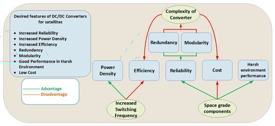 These features are schematically represented in Figure 7. Several DC-DC converter topologies are mentioned in the literature for various applications. However, they cannot be directly adopted for satellite applications due to the strict design requirements in space. The following section provides a detailed review of the topologies that can be adopted for satellite applications.