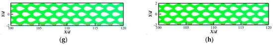 Pin-fin cooling, an effective heat transfer enhancement strategy, has been widely used in industry. Several researchers have confirmed that the pin fin greatly enhances the convective heat transfer on the target surface [23,24,25]. For instance, Liang et al. [24] measured the flow field and heat transfer performance of different plate-pin fin heat radiators by means of numerical simulation and experimental measurement. İzci et al. [25] considered the role of the shape of pin fins on the flow field and heat transfer performance of micro radiators. The rectangular-shaped micro pin fin has the maximum heat transfer coefficient and friction coefficient. In contrast, the cone-shaped setting shows the best thermal performance. Furthermore, numerous shapes of pin fins, including square, circular, elliptic, NACA profile, and waterdrop, have been developed [26,27]. Among them, the waterdrop-shaped pin fin including NACA profile and the waterdrop showed a harmony between efficient heat exchange and low flow loss [28,29,30]. For instance, Wu et al. [29] found that NACA6412 can obtain the overall best thermal performance. Compared with NACA0012, the Nusselt number and TPF increased by 57.62% and 35.43%, respectively. Furthermore, Ambreen et al. [30] compared the efficiency of the streamlined fin and nanofluid-cooled sharp within a wide range of parameters. At the maximum pressure drop, the best-performing fins, in order of efficiency, were circular, elliptical, and diamond fins.