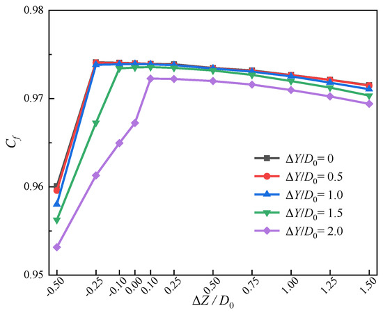 3.2. Influence of ΔY (ΔZ = −0.50D0)