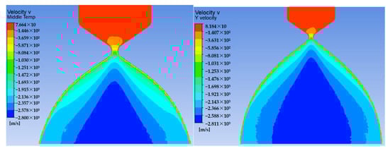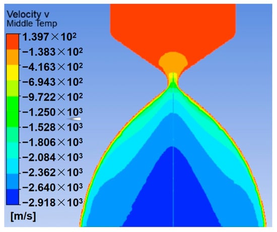 At the exhaust velocity of the additional simulation with expansion ratios of 30 and 40, the acceleration is greatly influenced by the boundary layer. In the second figure, the isovelocity line of the central fluid begins to show a tendency to contract inwards.