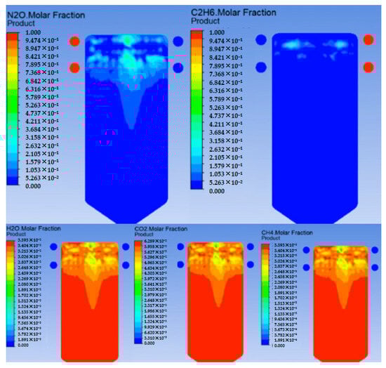 Due to the characteristics of CFX, the molar coefficients of reactants and products should be determined before simulation. Consequently, the reaction equilibrium in Equation (1) is used in the CFX simulations.