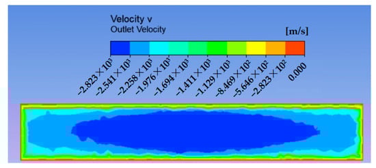 Front view of exhaust velocity in the expansion nozzle (exhaust direction is presented as negative on the scale).